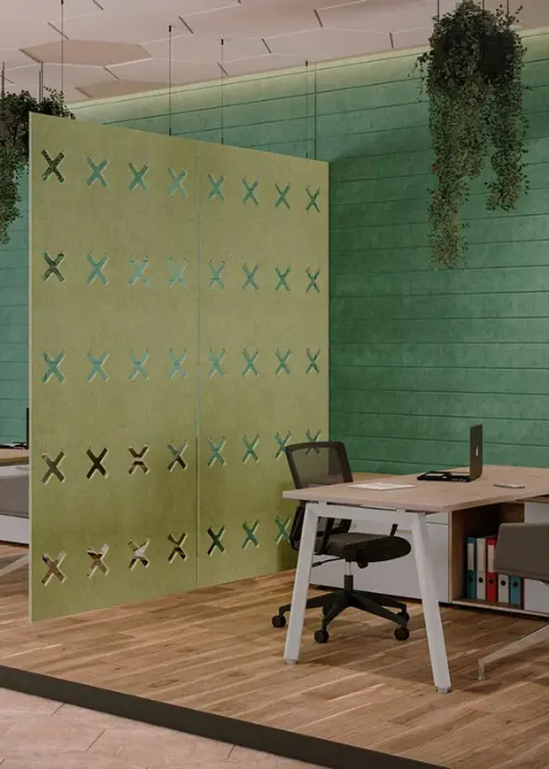 Los paneles acústicos metálicos con núcleo de lana de roca actúan tanto como absorbentes (reduciendo eco y reverberación) como aislantes (bloqueando el paso del sonido). En la práctica, mejoran el confort sonoro y la privacidad al mismo tiempo.